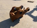 Used hydraulic Miller / Geith quick coupler. The pins 100 / 90mm – stick 385mm – center to center 540 mm. The bucket opening on the back side isn’t working properly.