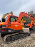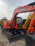 The Doosan DX75-9C is a robust and versatile 7.5‑ton class crawler excavator, engineered for light to medium‑duty applications including construction, landscaping, utility work, and material handling. Powered by a fuel‑efficient 39 kW Yanmar 4TNV98 diesel engine, it delivers reliable power and low operating costs while meeting strict emission standards. With an operating weight of approximately 7,420 kg and a standard 0.3 m³ bucket capacity, it offers strong digging force and smooth hydraulic control for precise, productive operation. Its compact design ensures excellent maneuverability in tight spaces, while the reinforced undercarriage and durable structure enhance stability and longevity. The ergonomic cab provides a comfortable, low‑noise working environment with intuitive controls and good visibility, reducing operator fatigue. Designed for easy maintenance and high uptime, the DX75‑9C combines performance, durability, and cost‑effectiveness for daily job‑site demands.