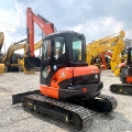 Kubota KX161 (5.5 tons) Tonnage: 5.5 tons Year of Manufacture: 2008–2018 (Classic model) Power Type: Diesel Engine Manufacturer: Kubota Engine Output Power: 34.2kW (46HP) Emission Standard: China II / China III / Euro III Engine Model: Kubota V2203-M-DI Auxiliary Hydraulic Flow (l/min): 95 L/min Maximum Lifting Capacity: 2100kg Maximum Speed: 4.5km/h Gross Weight (kg): 5450kg Track Width (mm): 400mm Bucket Capacity (m³): 0.21m³ Transport Dimensions (L×W×H): 5440×1950×2560mm Arm/Stick Length (mm): 1850mm Track Brand: Kubota original steel track Country of Manufacture: Japan