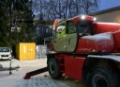 Teleskopslastaren servas regelbundet av Scantruck AB. Maskinen har används som service maskin fram och tillbaka transporter i tunnlar. Normalskick