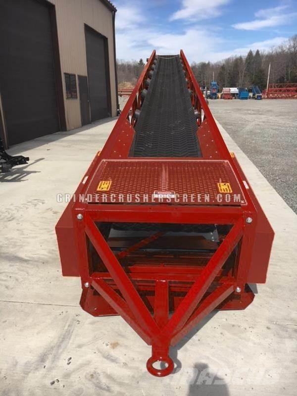 Description: 30 wide belt in 40' and 50' lengths. Low profile, open top (idler in truss), road towable (with military pintle), radial stacker. Electric/Hydraulic models standard, but optional powerpack available. Optional: Self-contained (20HP Gas Honda motor) 5th Wheel (military pintle standard) Lightbar