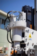 Turchi 300F self-propelled hydraulic pile driver, ideal for photovoltaic systems and fences. Pile driving height up to 4.5 meters.Hyundai 45 kW engine, 950 joule Indeco hammer, built-in GPS and column tiltable down to -51°.Compact, precise and powerful, with 4,500 kg operating weight and 100% rubber tracks.