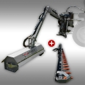 Der Auslegearm ist sehr gut zum Mähen und Mulchen von Böschungen, Gräben oder Wald und Straßenrändern geeignet. Ebenso lassen sich damit perfekt Buschwerk und Hecken auf das gewünschte Maß zurückstutzen. Die pendelnd aufgehängten Y-Messer des 100 cm breiten Mulchers hinterlassen einen sauberen Schnitt und das Mähgut wird optimal zerkleinert.