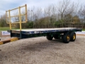 28' x 8' deck.Lorry trailer conversion. A strong trailer with bale ladders at each end. 2 sprung commercial axles with hydraulic trailer brakes. The wood on the deck is poor and the brakes and lights are not functioning so sold as seen.