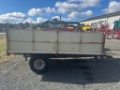 Peräkärry peltipohjalla ja peltilaidoilla. Ylemmät laidat kun irrottaa niin alemmat aukeaa saranalla. Valot toimii Kippi tiivistetty ja on kuiva Renkaat uusittu hiljan
