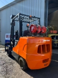 Doosan 5.5 Tonne compact gas forklift truck, 5500mm lift height with triple mast and side shift, 2012 model with only 5135 hours of operation and ready for work.