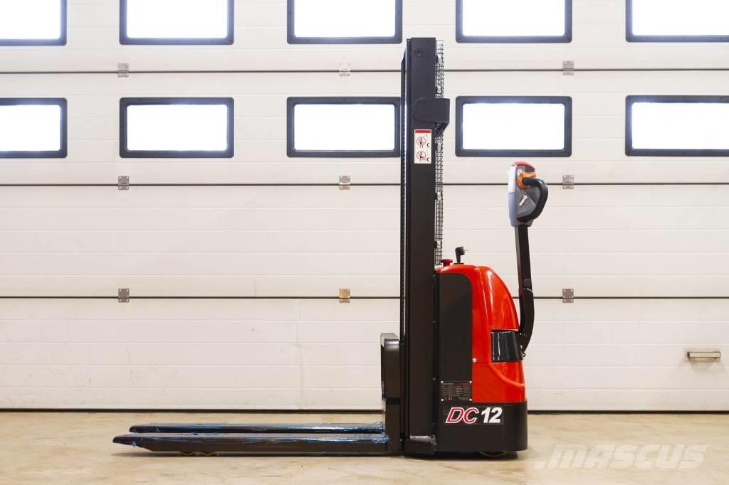New and unused pedestrian stacker with a 1200 kg lift capacity. Two-stage mast, max lift height 2500 mm. Li-Ion battery with integrated charger.