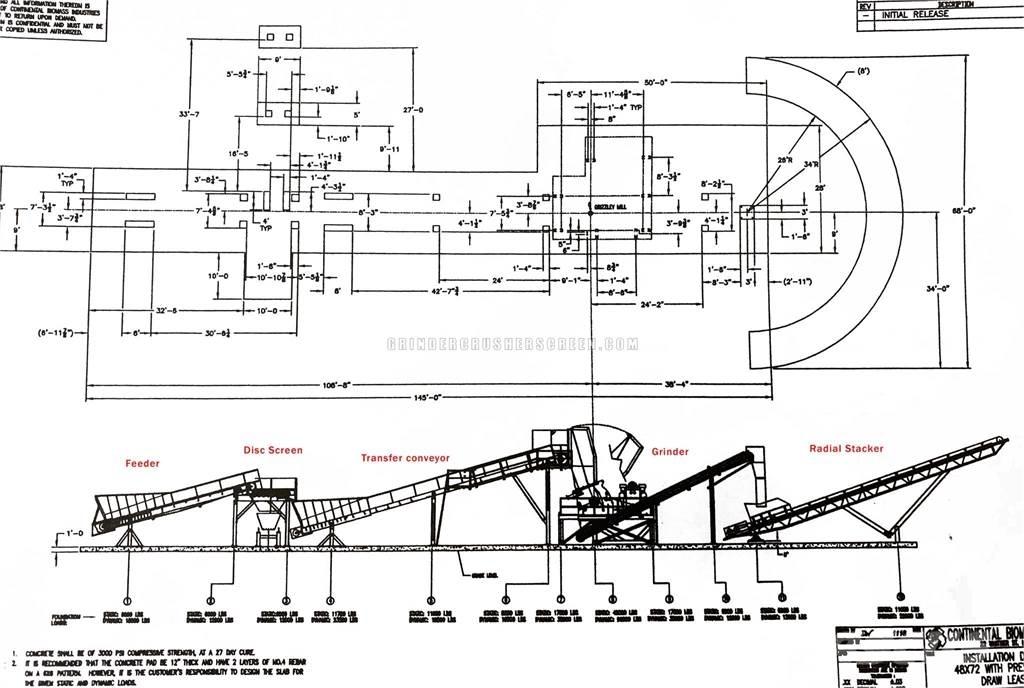 Description: System includes; 4872 grinder, feeder, disc screen, transfer conveyor, radial stacking conveyor, and Cat generator.