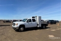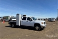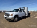 2013 GMC Sierra 3500HD 4x4 Crew Cab Flatbed Truck V8 6.0 L Gasoline Engine, 7664 Engine hrs, Automatic Transmission, 4800 lb Front Axle, 9750 lb Rears, 13200 lb GVWR, Aluminum Wheels, 235/80R17, Spring Suspension, 174 in Wheelbase, 9 ft 8 in x 92 in Bed, Dual Rear Wheel