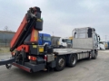 Spezialaufbau: Kran: Palfinger PK 34002-SHB (Power Link Plus), Tragkraft max. 10.000 kg, faltbar, Funkfernbedienung, 3-fach hydraulischer Ausschub (Arbeitshöhe ca. 13.3 mtr), vollhydraulische 4-Punkt Abstützung, Ölkühler. Abgelesenes Lastdiagramm: Hebt bei 4.2m-7.5t, 6.1m-5.1t, 8m-3.8t, 10.1m-3t.Aufbau: Offene Pritsche (Beladehöhe ca. 1.120 mm), hohe Stirnwand, Hartholz/Stahlboden, 2 ausziehbare Containerverriegelungspaare (Twist Lock).