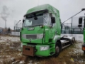 Container transporter truck is after the accident, appeared frame deformation.