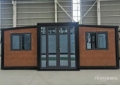 extended internal size 19.4 ft x 20.7 ft x 8.1 ft, folded size 19.4 ft x 7.22 ft x 8.1 ft, bathroom wall panel partition door, toilet, wash basin, mirror, shower, glass sliding door, pre-installed sewer and sewer pipes, L-shaped vertical cabinets, marble countertops, wooden cabinets, stainless steel sink and faucet, floor upholstery, american standard socket