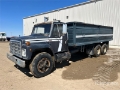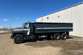1985 International F1954 6x4 Grain Truck 6 Cylinder Diesel Engine, 10-Speed Manual Transmission, 11R22.5, Spring over Walking Beam Suspension, 224 in Wheelbase, 20 ft Long x 4 ft High Steel Body, Split Swing Tailgate, Tailgate Chute