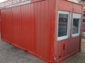 Manufacturer: Unknown Model: Office container Year of build: 2006 Condition: Used Data: Dimensions LxWxH: 6058x2438x2800 mm inside height: 2500 mm Modular construction: Container steel construction class EXC2 Information: used, damaged, dents on the exterior walls Transport Points in accordance with ISO Standard: in the corners stackable: 3-fold Roof: with layer structure Galvanized sheet steel: 0,55 mm Drainage of rainwater: via surrounding gutters in the frame, with downpipes in the corner posts Load-bearing capacity of the roof: 100 kg / m² Walls: replaceable panels with layered structure Floor: with layer structure Floor finish: 2 mm grey PVC flooring, welded at the joints and white PVC skirting board Floor load capcity: 200 kg / m² Dimensions: 900x2.000mm Windows: white PVC windows Electrical installation: electrical flush-mounted installation (concealed) Powerinstallation: 230V sockets Lighting (2x16W): Lamps Location: 97828 Marktheidenfeld immediately available.